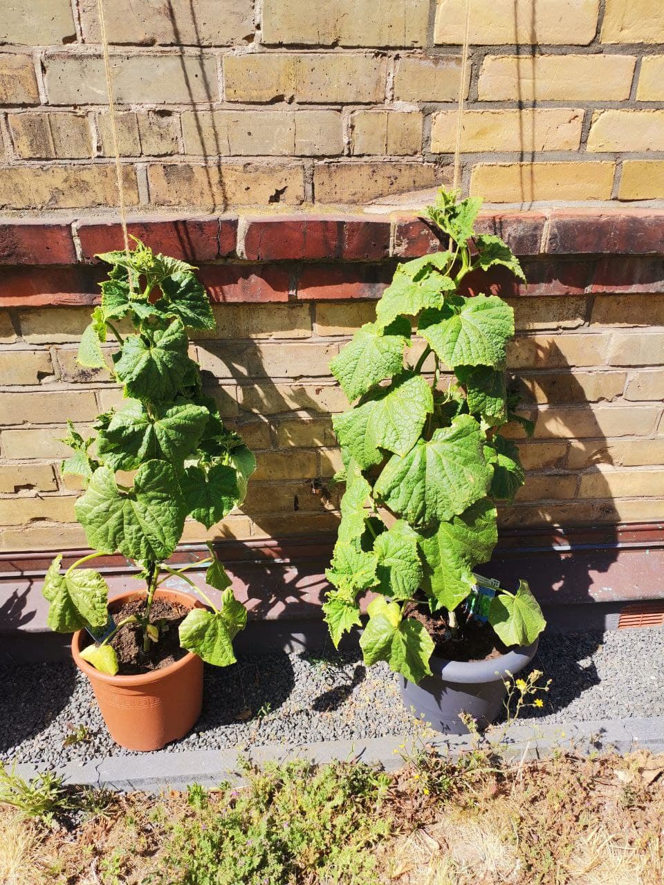 Selbe Stelle, selbe Erde, nur die Farbe des Topf ist anders. Ansonsten gab es nur einen Unterschied: die Pflanze links im Bild wurde mit normalem Leitungswasser gegossen. Sie hat Blattläuse und weniger und kleinere Blätter. Sie sieht nicht kräftig aus.